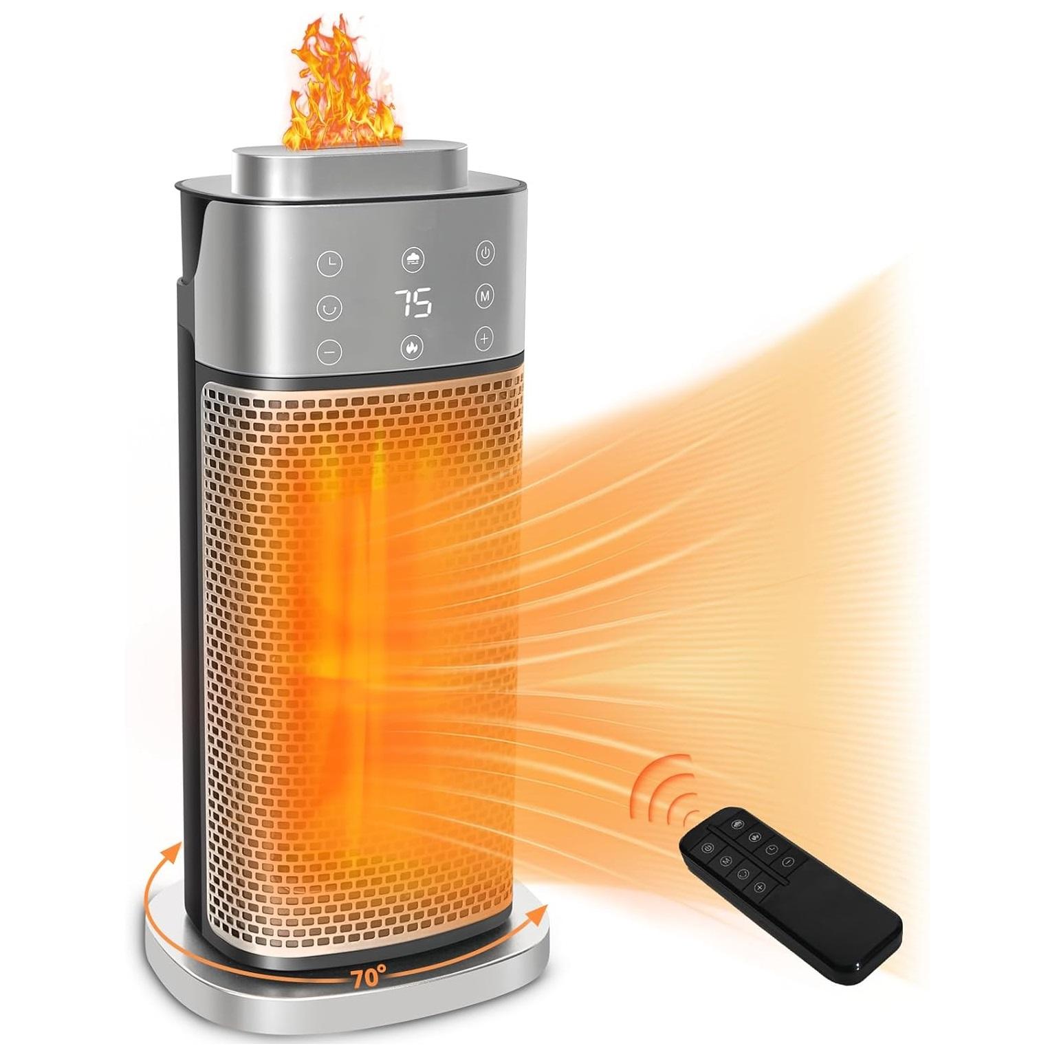 1500W Bærbar Romvarmer for Innendørs Bruk med Termostat Luftfukter, 70° Oscillasjon 12t Timer Overopphetings- Veltebeskyttelse for Soverom Hjemmekonto