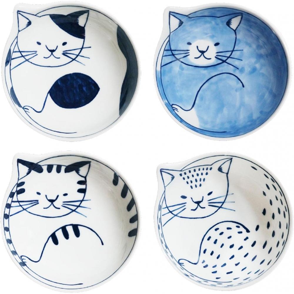Set de 4 assiettes-bols Ishimaru Togei Coneco Motif Chat Passe au Micro-ondes Lave-vaisselle