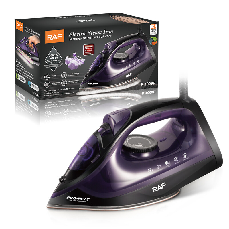 RAF Fer à repasser vapeur électrique 2000 W avec semelle en céramique, fonction pressing et auto-nettoyage, vapeur verticale et réservoir d’eau de 210 ml