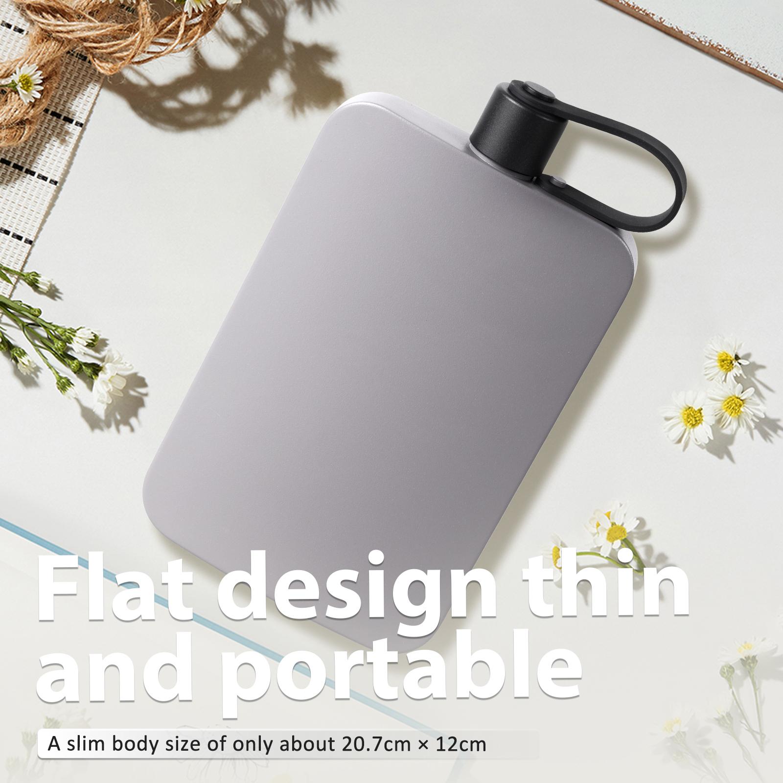 Gourde plate en acier inoxydable avec bouchon intégré, 500 ml, portable, idéale pour les sports de plein air et les voyages. Cadeau parfait pour un am