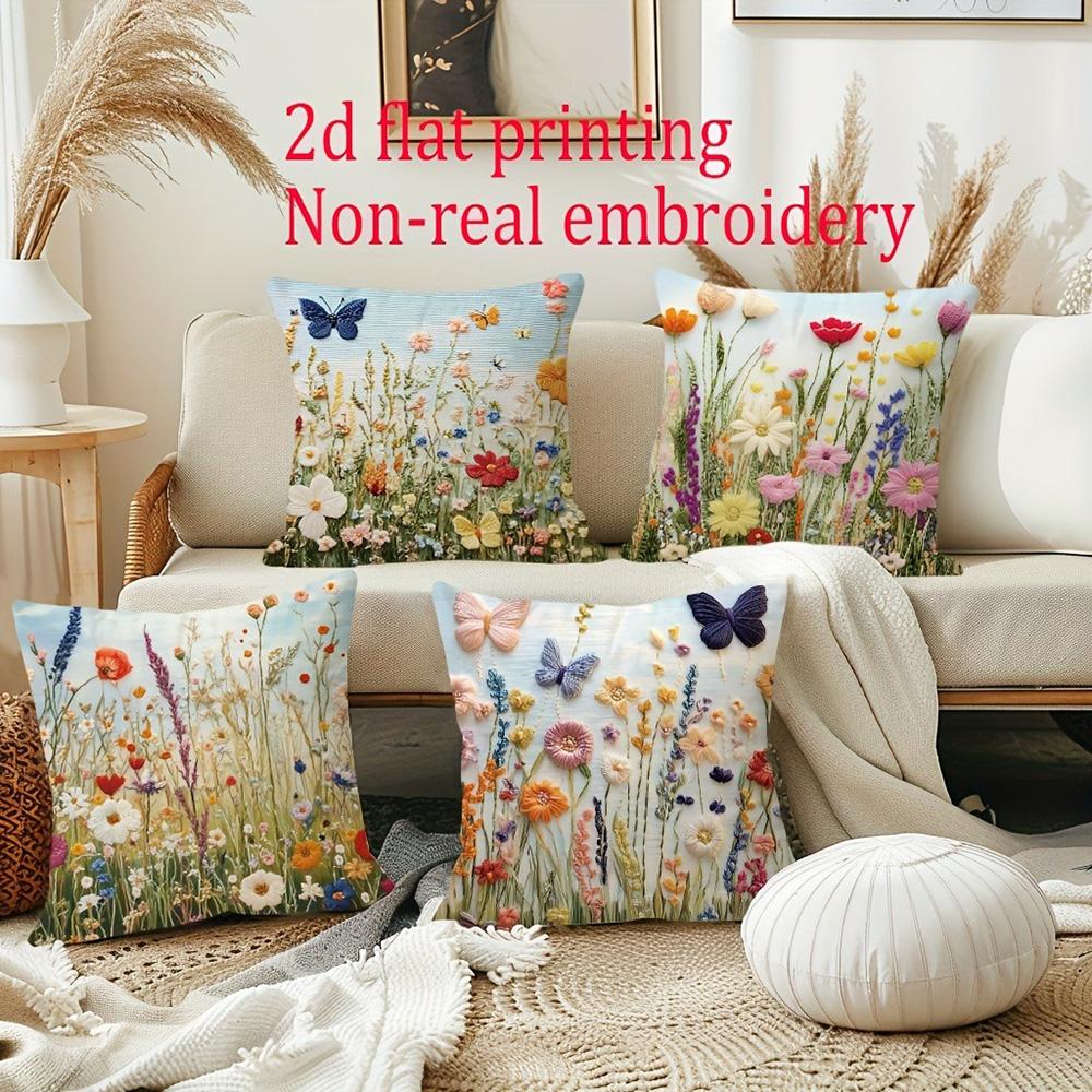 Bloemenweide Kussenslopen met Vlinders - Voeg een vleugje Natuur toe aan uw Huis! Sofa kussenhoes huis kamer decoratie