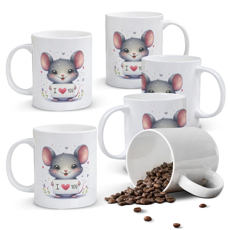 Alphynix 1pc Cute Gray Mouse Mug, 11oz Ceramic Cup with Adorable Rodent Holding "I Love You" Sign, Sweet Gift for Kids, Valentine‘s Day, Birthday