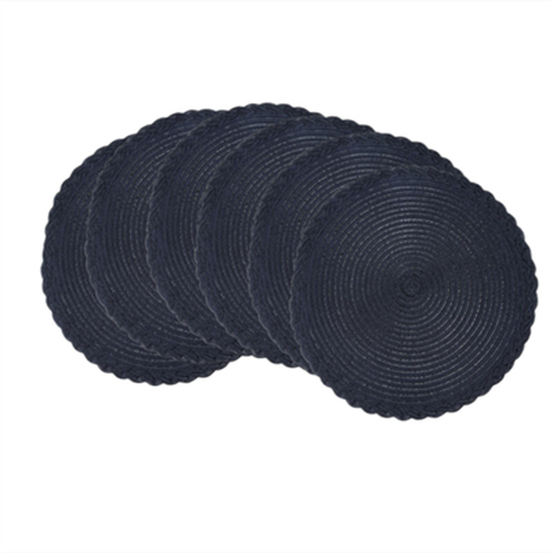 6 pieces, round 38cm woven placemats,Polyester with outer ring, three-strand placemat, black, anti-slip polyester Nordic placemats, suitable for home, kitchen, and dining table use, perfect for holiday parties, birthdays, weddings, and dinners
