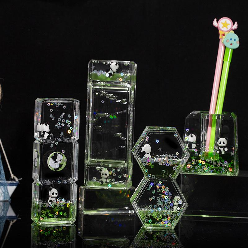 Akryl Panda Flytande Timglas: Deko med rinnande sand för skrivbordet & Födelsedagspresent för barn