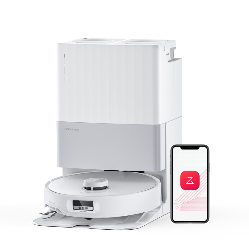 Roborock Qrevo Edge, robot aspirateur laveur avec station d'accueil multifonction, aspiration 18 500 Pa, serpillière chauffante 75 °C, blanc