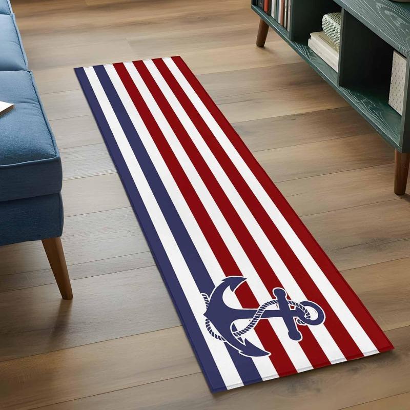 Maritimt Anker Stripete Løperteppe Maritim Sjømannsstil Design Sklisikkert Teppe for Stue Soverom Gang Entrédekor