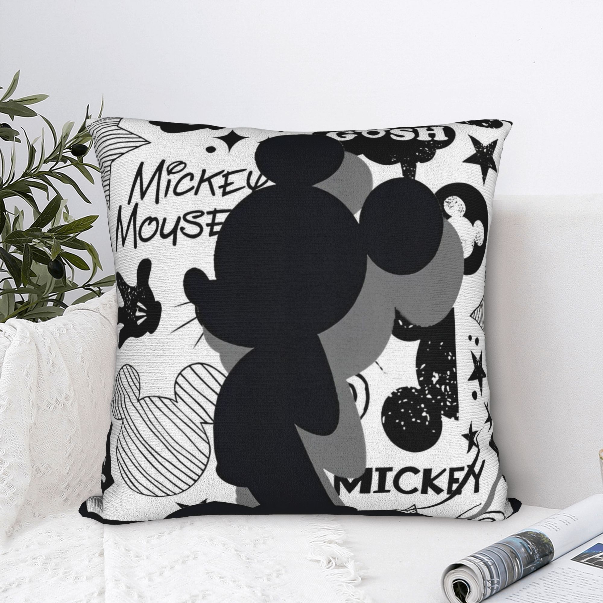 Schattige Anime Mickey Mouse Vierkante Kussenhoes Polyester Kussens voor Bank , Casual Kussenhoes