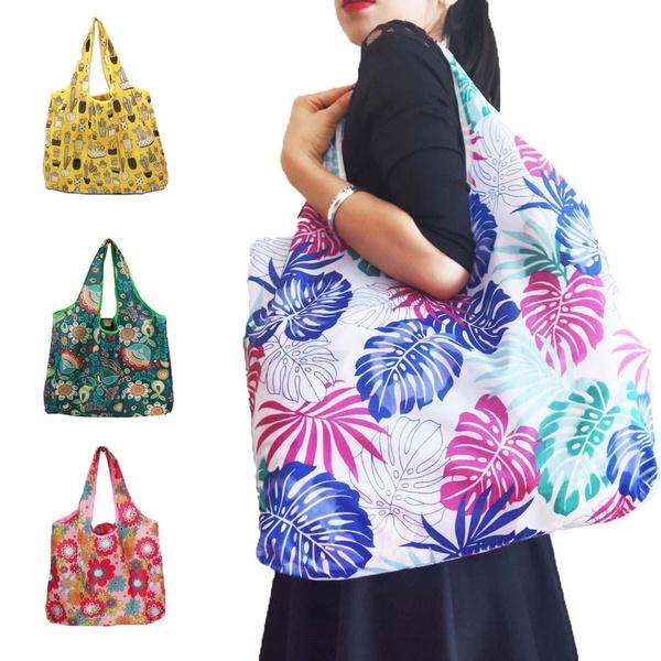 Sacs Tote Pliables Réutilisables en Polyester Sac de Courses Écologique Grande Capacité Sacs d'Épicerie Sac de Courses Pliant