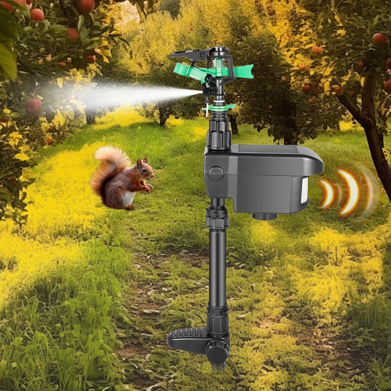 Solcelledrevet bevegelsessensor sprinkler 0-270° justerbar 1-10 meter registreringsavstand IPX4 vanntett for hage, gård, skadedyr Svart