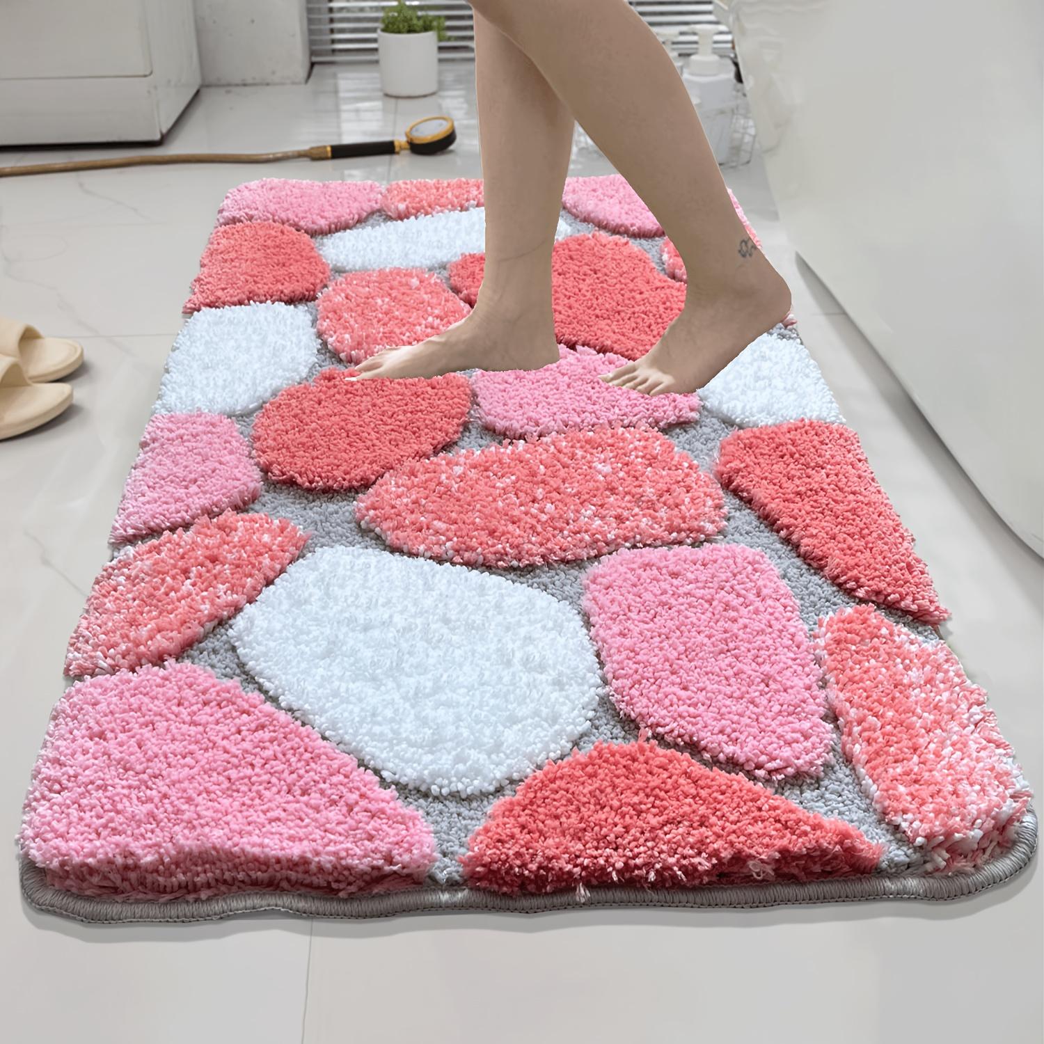 Tapis de bain moelleux en forme de galet avec envers antidérapant - Doux, lavable, mélange de polyester ultrafin, options 3D multicolores pour la déco