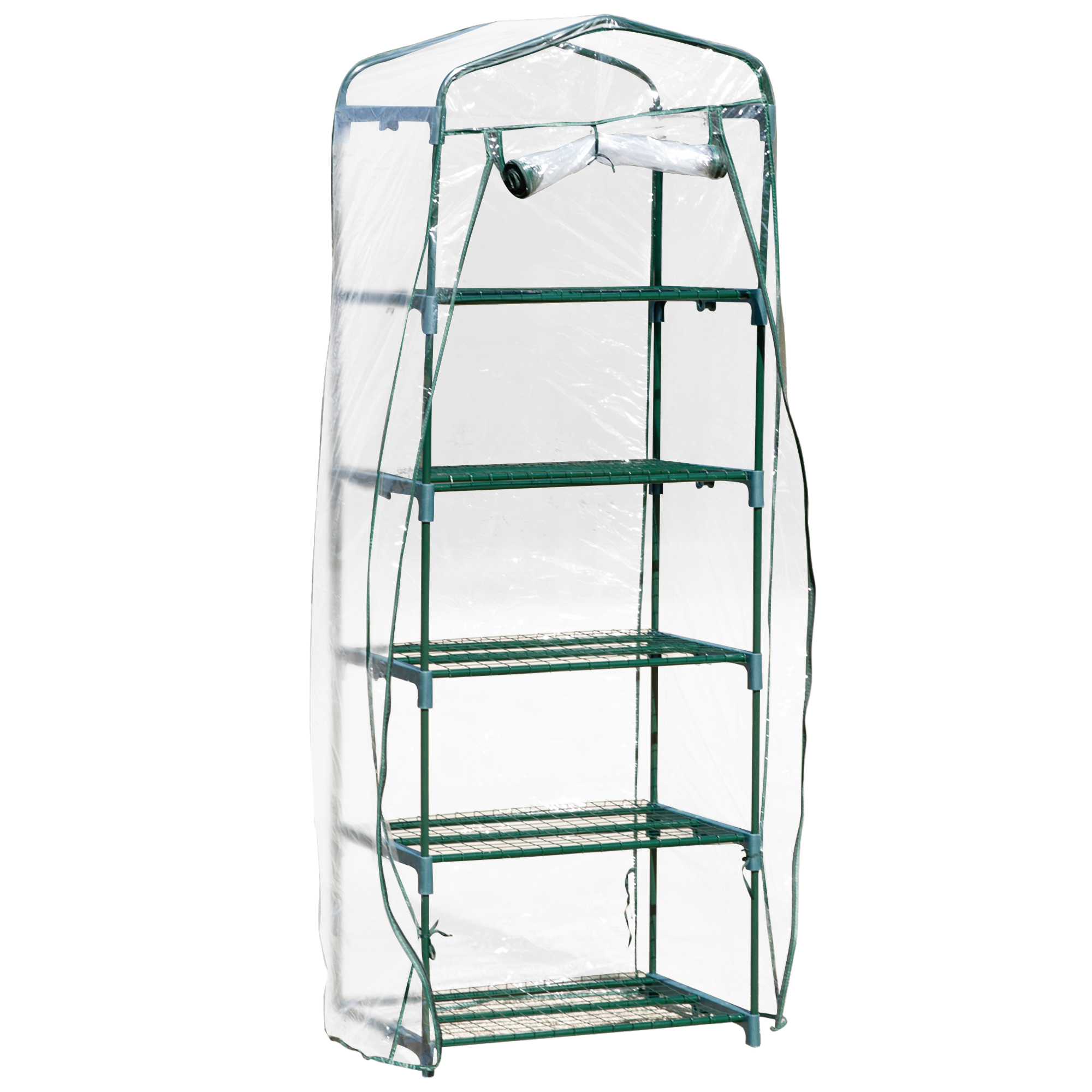 Outsunny Mini Serra per Piante a 5 Ripiani in Acciaio con Copertura in PVC, 69x49x193cm