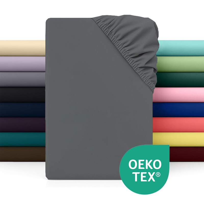 LEBONSOIR 150x200cm Fitted Sheet, 30CM/12Inch Deep Pocket - Soft Microfiber, No-Pop Off Elastic, 1 Fitted Sheet Only-Dark Gray