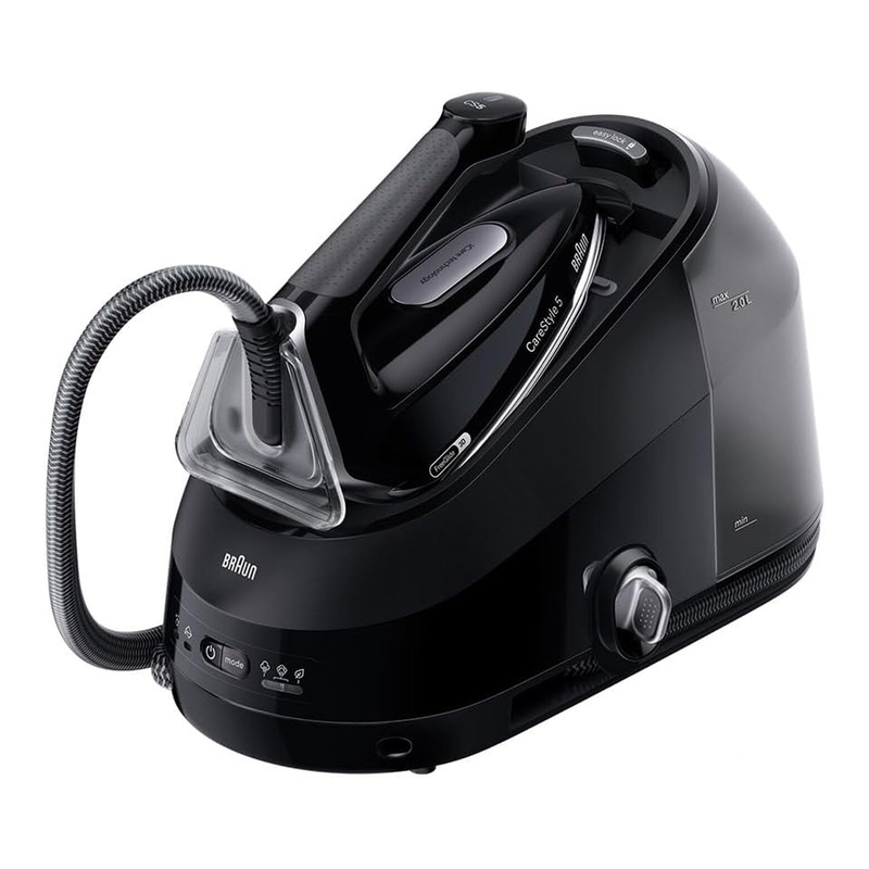 Braun CareStyle 5 Dampfbügelstation IS 5249 BK mit 7,5 bar, 510 g/min Dampfstoß, abnehmbarer 2,0 l Wassertank, EloxalPlus Bügelsohlen-Beschichtung, FreeGlide 3D Technologie, iCare Modus, Ultimate FastClean Entkalkungssystem