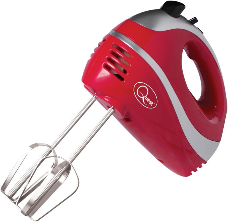 Quest Professional Hand Mixer - Red/Silver, Multi-Speed with Turbo Function and Attachments - Model 35820