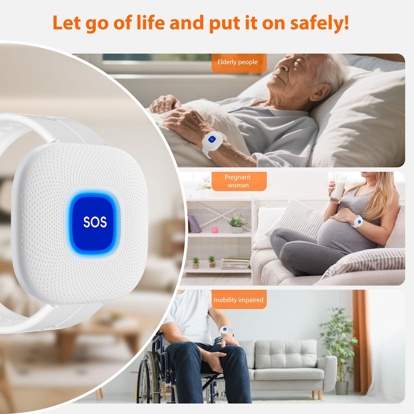 Trådløs personsøker-anropsknapp WiFi Nødalarmarmbånd Smart omsorgsperson-personsøker for eldre sykehus sykehjem med 30 meters rekkevidde App-kontroll