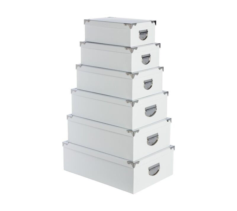 5five Lot de 6 boîtes de rangement, blanc uni, carton et métal, L 32 x l 21,5 x H 11,8 cm (Plus petite)