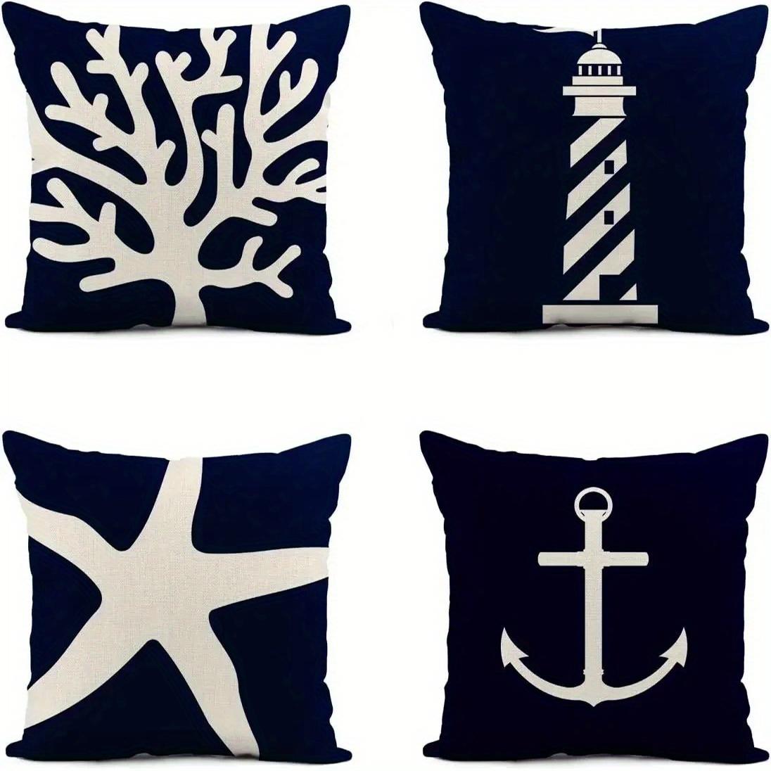 Huisdecoratie Kust Marine Stijl Koraal Vuurtoren Zeester Anker Vorm Geschikt Voor Bank, Slaapkamer, Auto, Kussenhoes