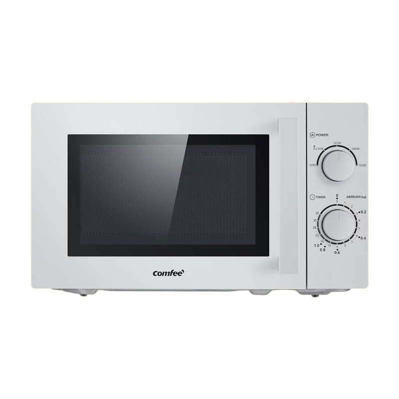 Comfee CMSN 20 si Solo-Mikrowelle, 5 Leistungsstufen, Innenbeleuchtung, einfaches Auftauen, 360°-Drehplatte, 20 l, 700 W, Silber