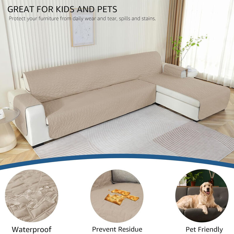 Housses de canapé YSTYLE Sectional pour L, housses de canapé réversibles, housses de chaise longue, housses de protection de meubles, 2 places, KOU, beige