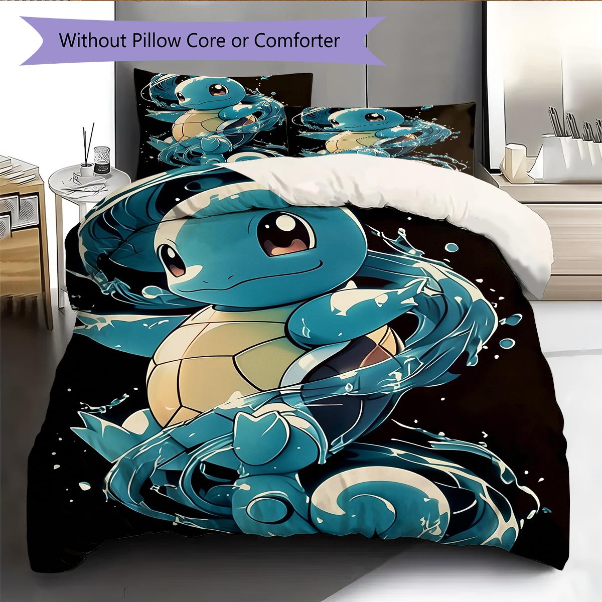 Squirtle Cartoon Pattern Bedding Home Decoration Birthday Gift (1 * duvet cover + 2 * pillowcase, without core)