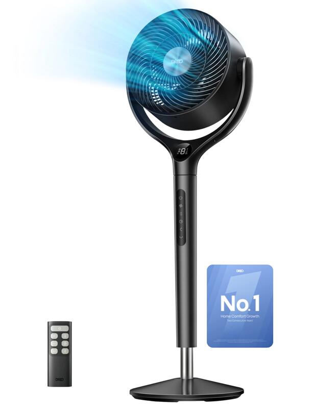 DREO 42 Zoll Luftzirkulationsventilator mit Fernbedienung, 1868 m³/h Luftvolumen, 28 ft/s Luftstrom für den ganzen Raum, leise bei 20 dB, 90° Oszillation, höhenverstellbar, 9 Geschwindigkeitsstufen