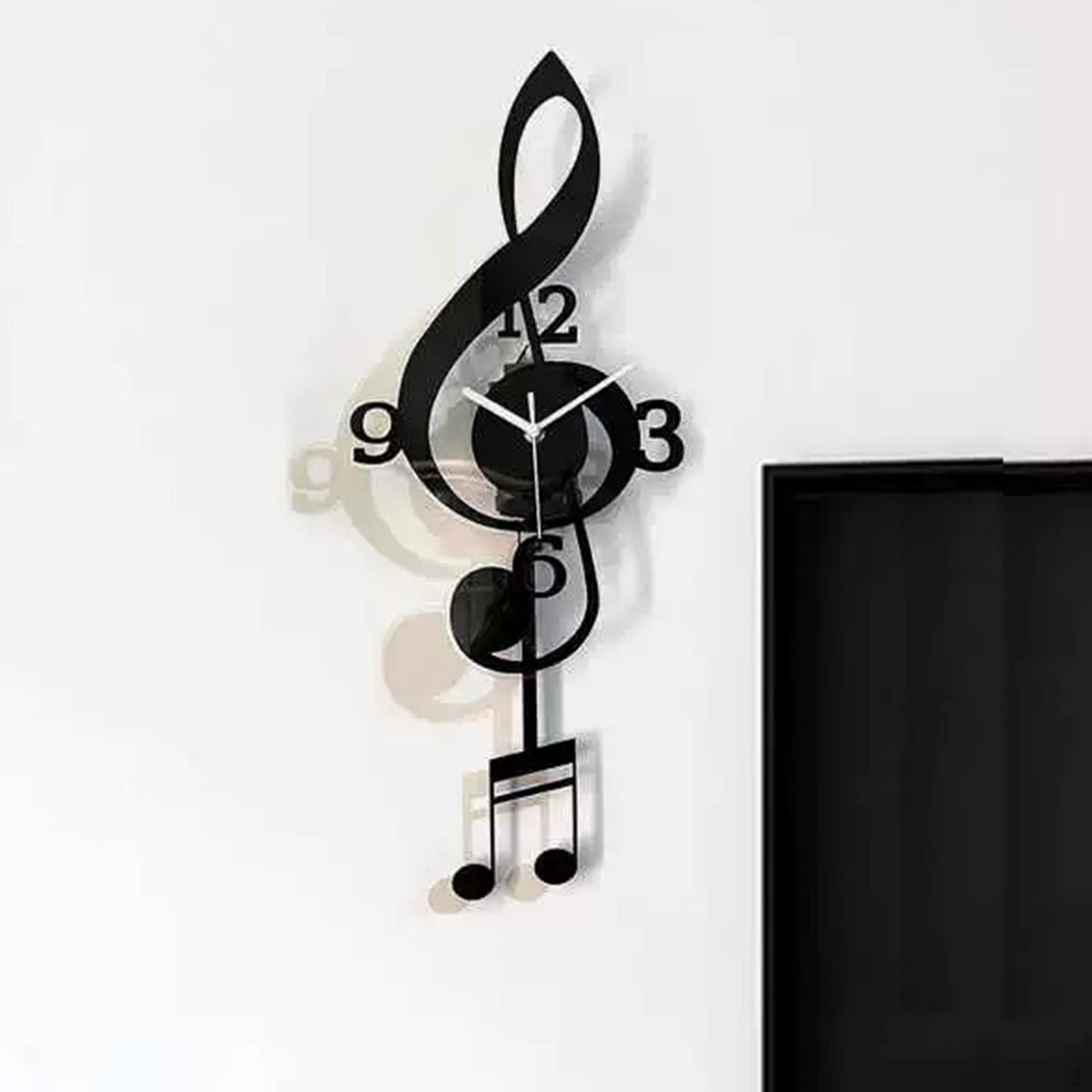 Musikknode Veggklokke Dekorativ Kunst med Pendel for Studierom Soverom Kafe ’S Svart