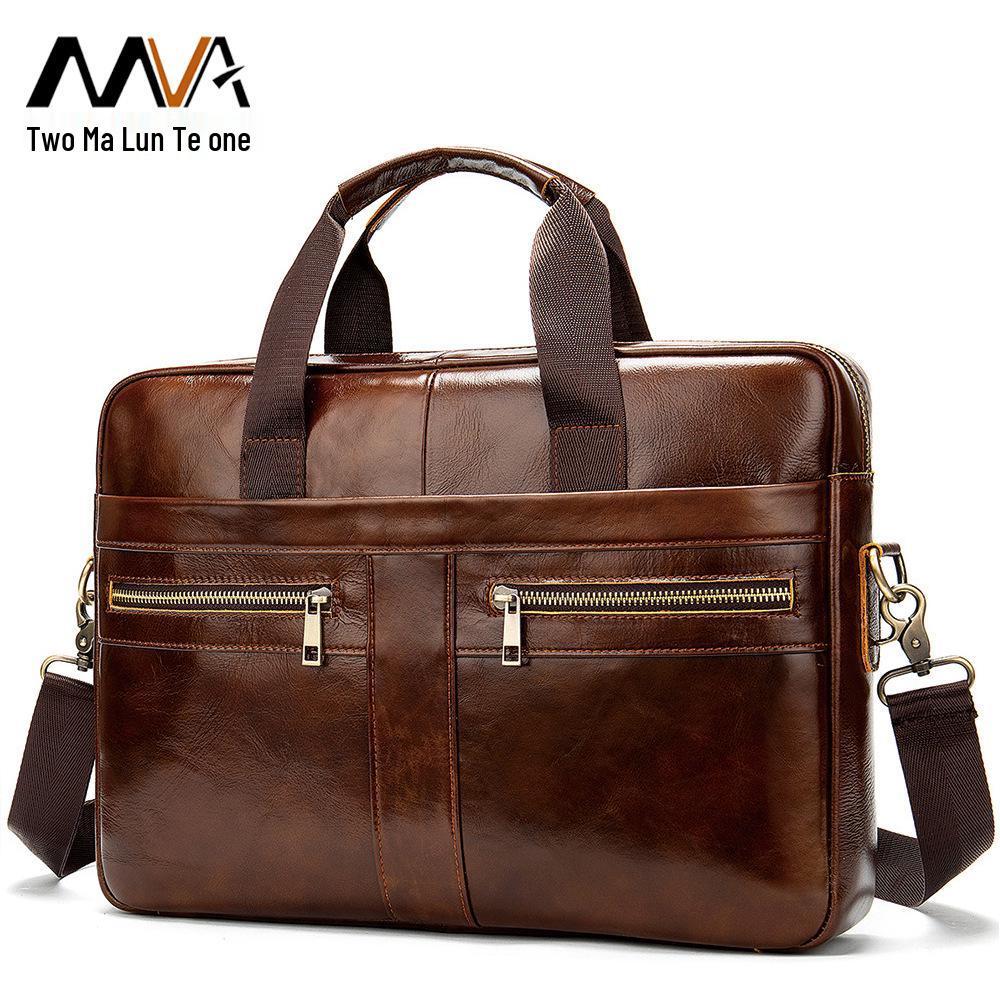 Heren Echt Lederen Zakelijke Aktetas, Toplaag Rundleer Handtas, Laptoptas voor Advocaten, Enkele Schouder Crossbody Grote Tas
