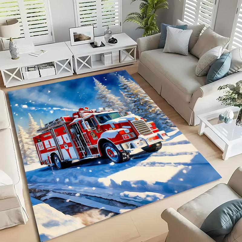 Feuerwehrsirene 3D-gedruckter Teppich, Wohnzimmer Schlafzimmermatte Kinderzimmer Weich und bequem Rutschfester Teppich Weihnachtsgeschenk