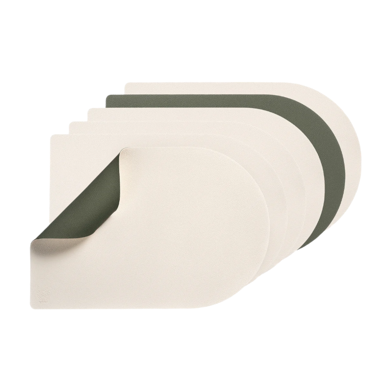 BJÖRN Lot de 6 sets de table rectangulaires réversibles en cuir recyclé - Blanc crème et gris-vert