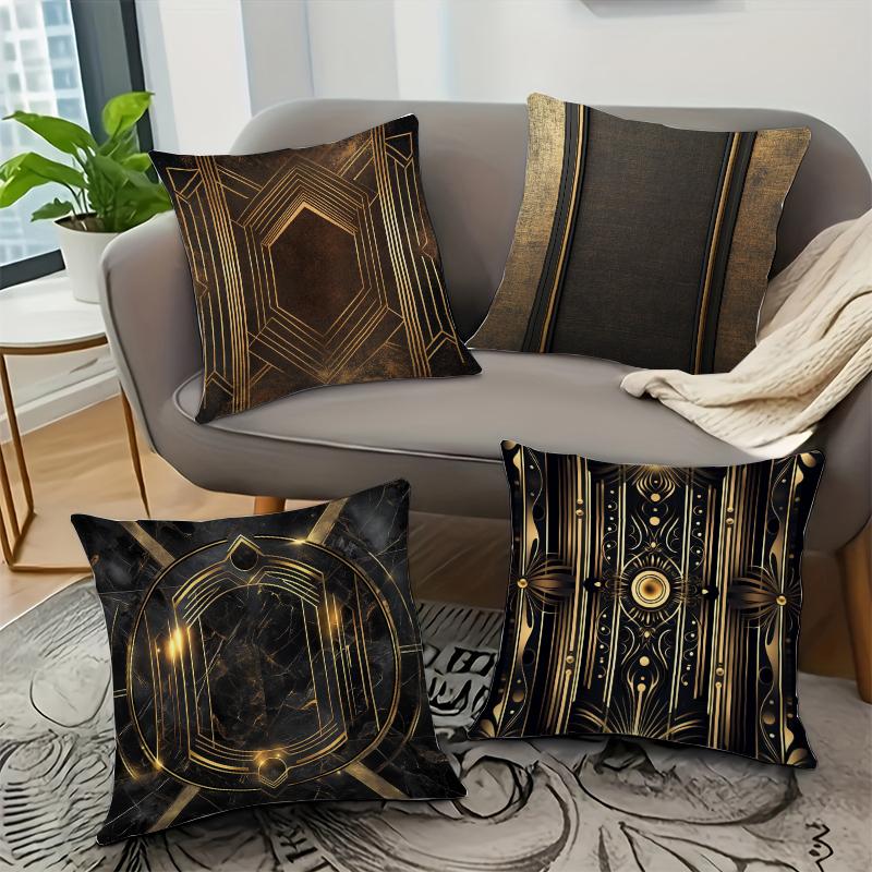 Black and Gold Luxury Geometric Pattern Print Decorative Polyester Cushion Cover Home Decor Pillowcase with Zipper