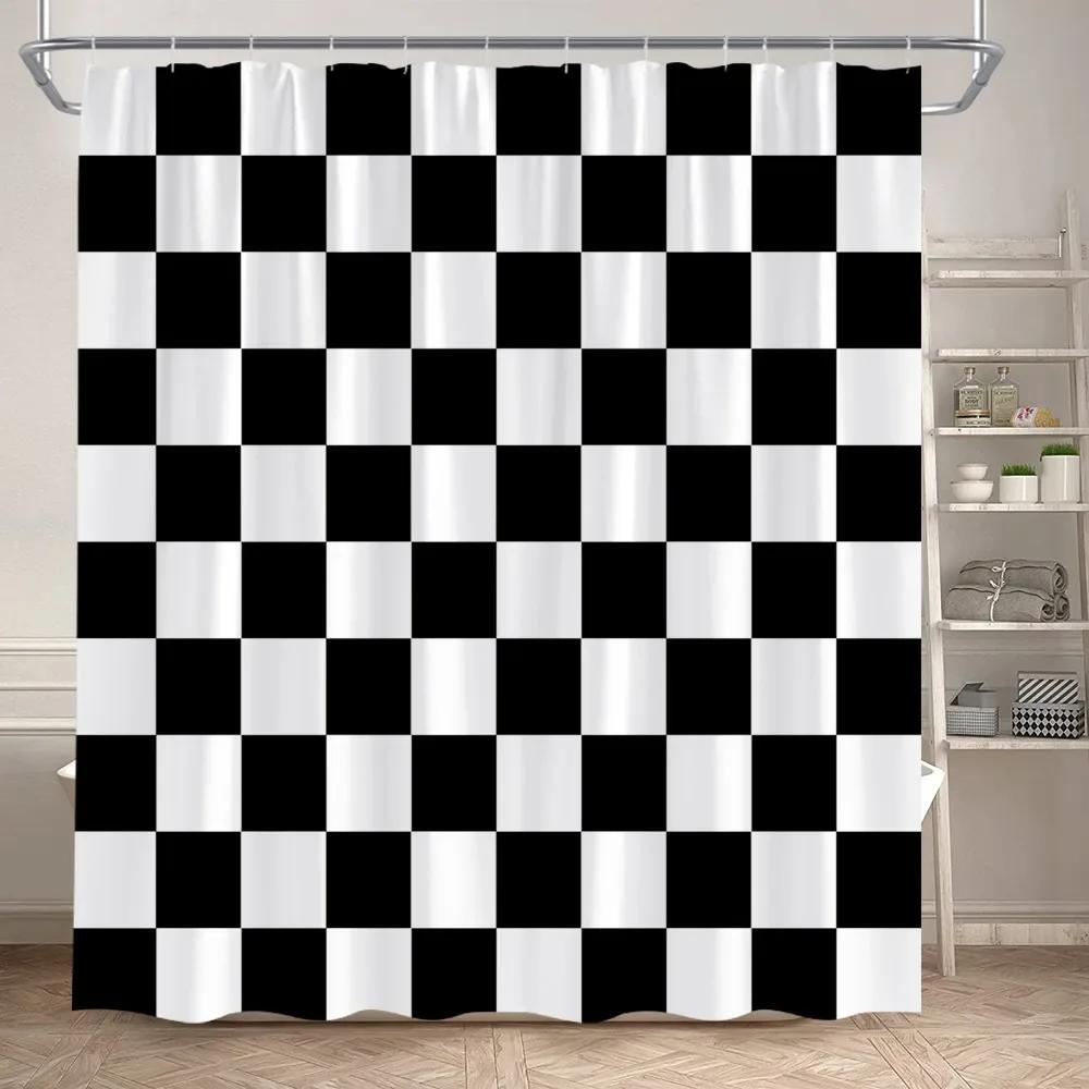 Black And White Striped Shower Curtain Modern Geometric Lines Minimalist European Style Bath Curtains Polyester Bathroom Decor