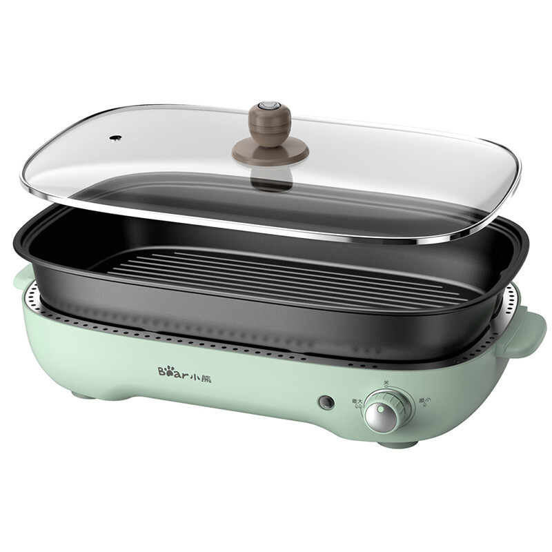 Bear Elektrische Grill- und Fondue-Pfanne, inkl. Grillplatte & 6-teiliger Mini-Pfannen, 1200-1400W