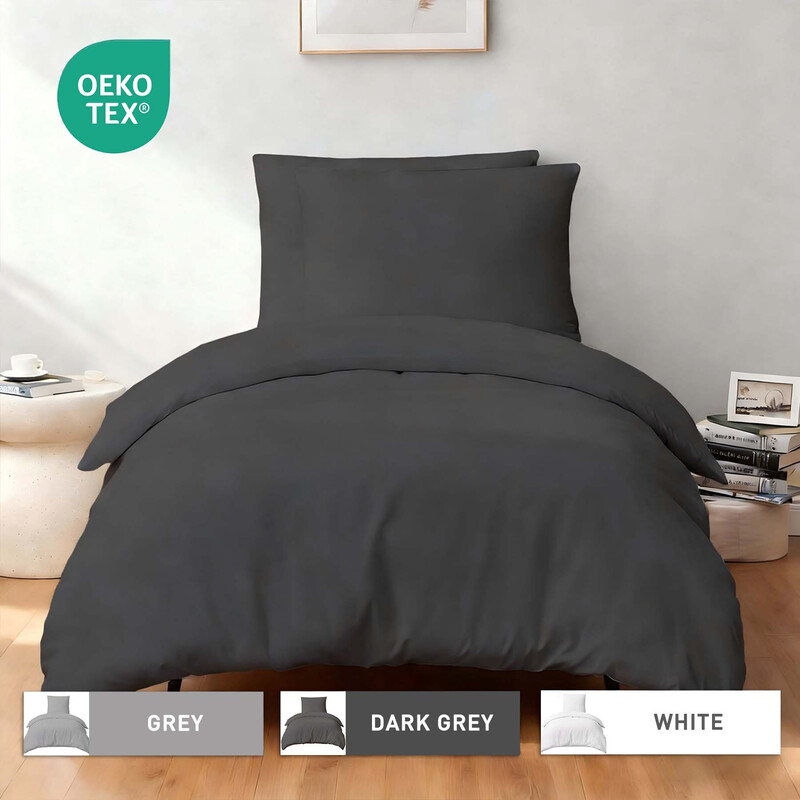LeBonsoir Parure de lit brossée avec 1 housse de couette 155 x 220 cm et 2 taies d’oreiller 80 x 80 cm, avec fermeture éclair - Gris foncé