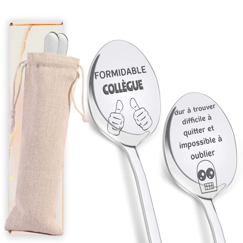 Alphynix Lot de 2 cuillères avec gravure « Formidable Collègue » et pochette de rangement