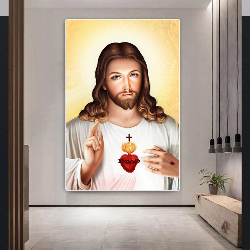 Sacred Heart Of Jesus Wall Art Canvas Painting Wall Poster Cuadros Decor Background Wall Decoration red