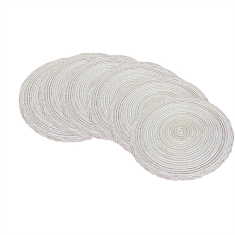 6 pieces, round 38cm woven placemats, Polyester patchwork three-strand placemat Gamp,anti-slip polyester Nordic placemats, suitable for home, kitchen, and dining table use, perfect for holiday parties, birthdays, weddings, and dinners