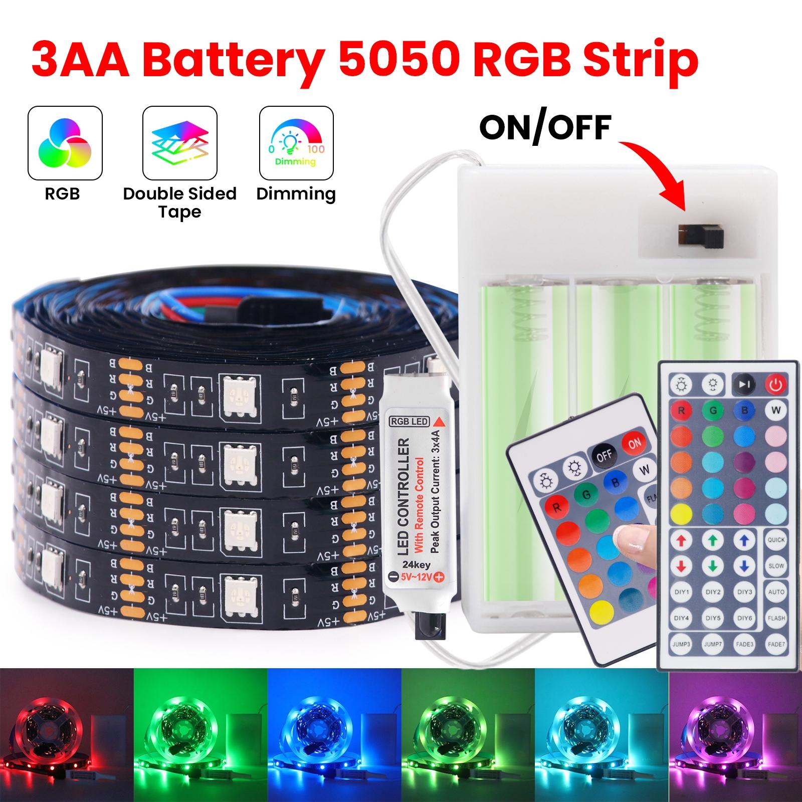 LED-strips med 3AA-batteri 5050 RGB 1M 2M 3M 4M 5M Selvklebende Båndlys Bluetooth TV-baklys Bakgrunnslys