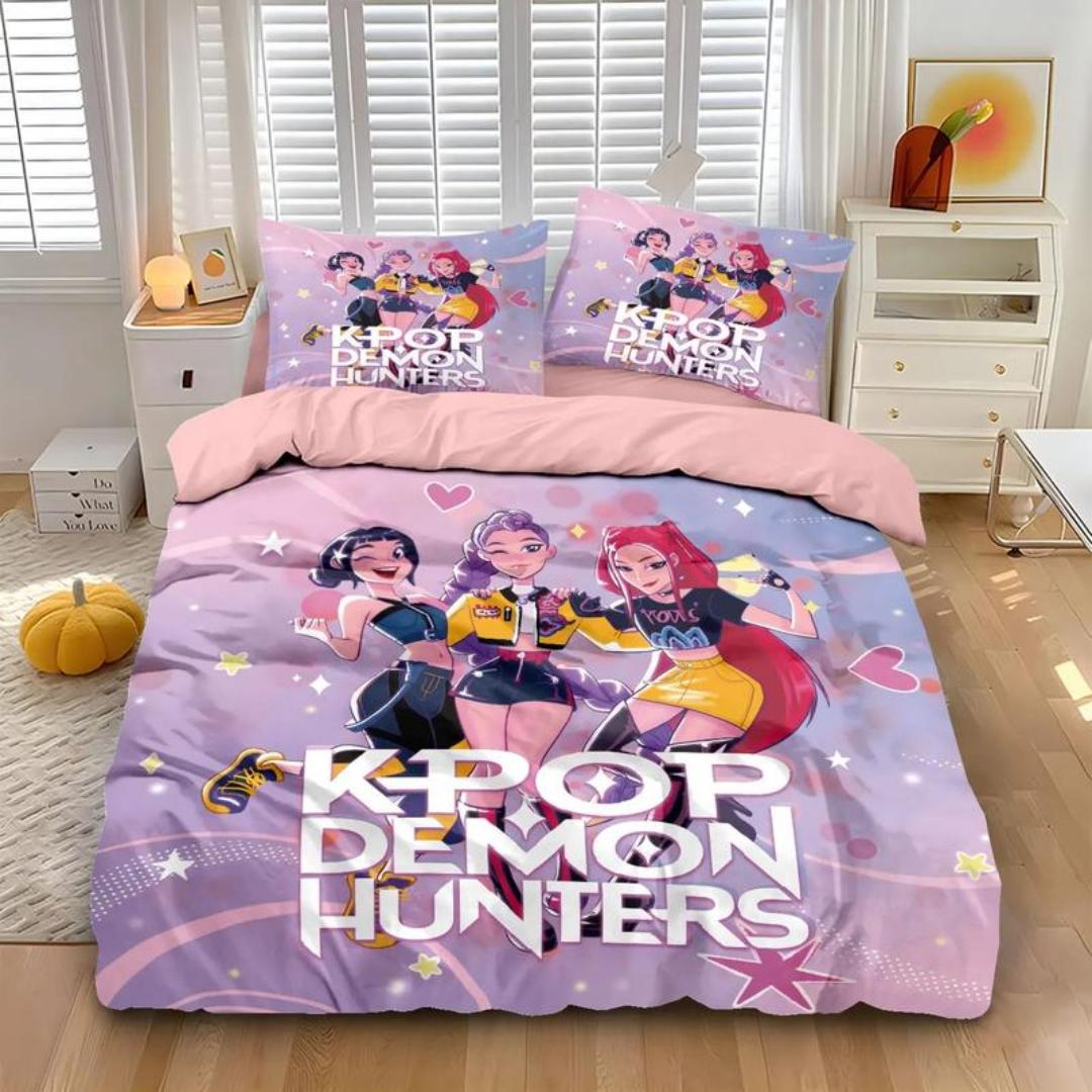 KPop D-Demon Hunters Bedding Set Single Halloween Costume Bedding Set - 2-3 Piece Comforter Quilt Duvet Cover Pillow Case Sets
