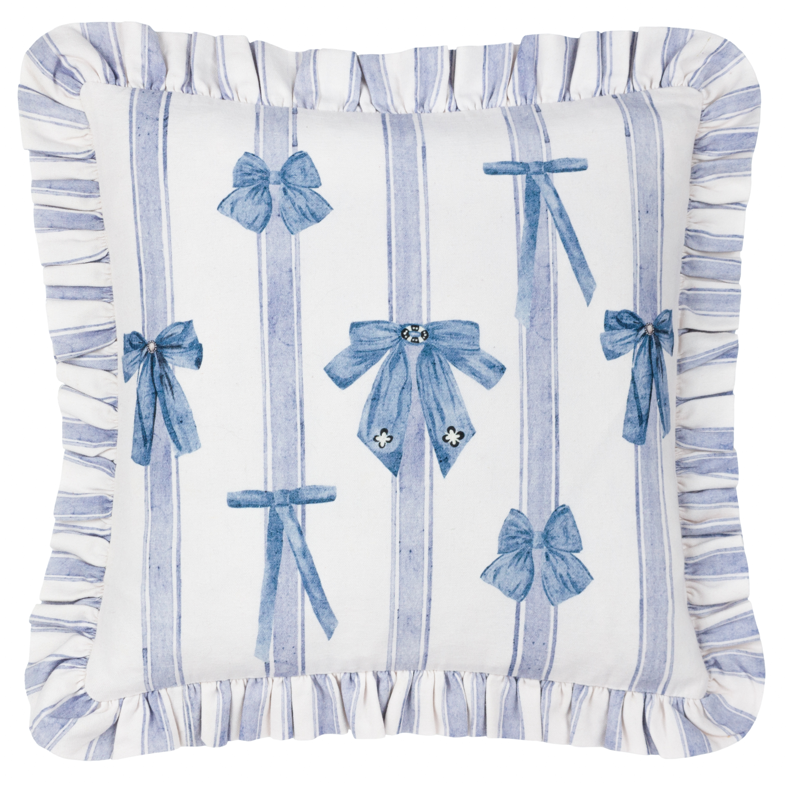 furn. Noortje Ruffle Bows Printed Cushion Cover - Blue Cotton - One Size | furn. Sale | Discount Designer Brands