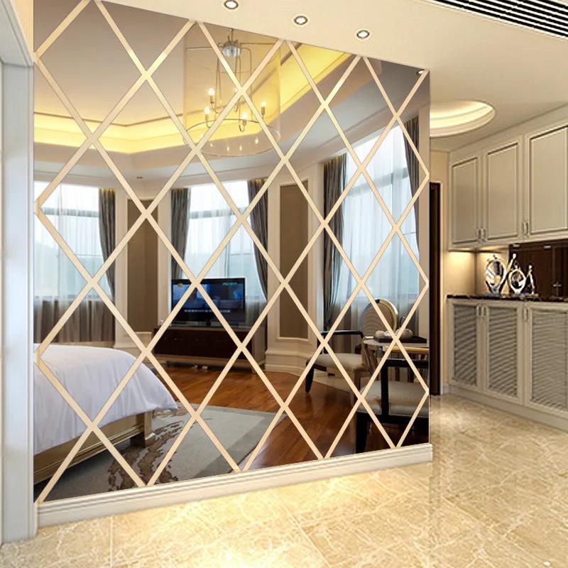 Stickers Miroir 3D Acrylique Triangles Auto-adhésifs Diamants Stickers Miroir Mural DIY pour Salon Décoration Intérieure 10/17/32/58 Pièces marron