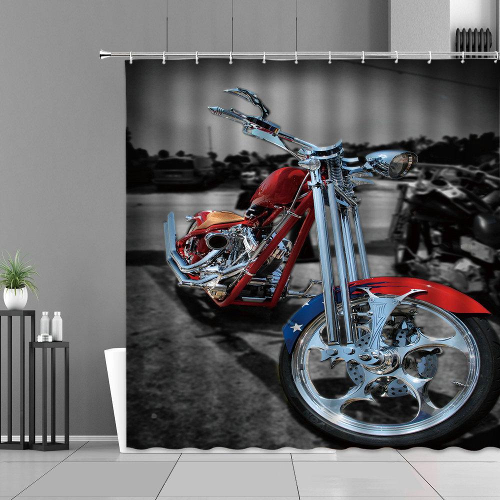 Retro Motorcycle Shower Curtains Classic Racing Car Pattern Waterproof Bathroom Curtain Extreme Sport Art Home Decor Wall Cloth