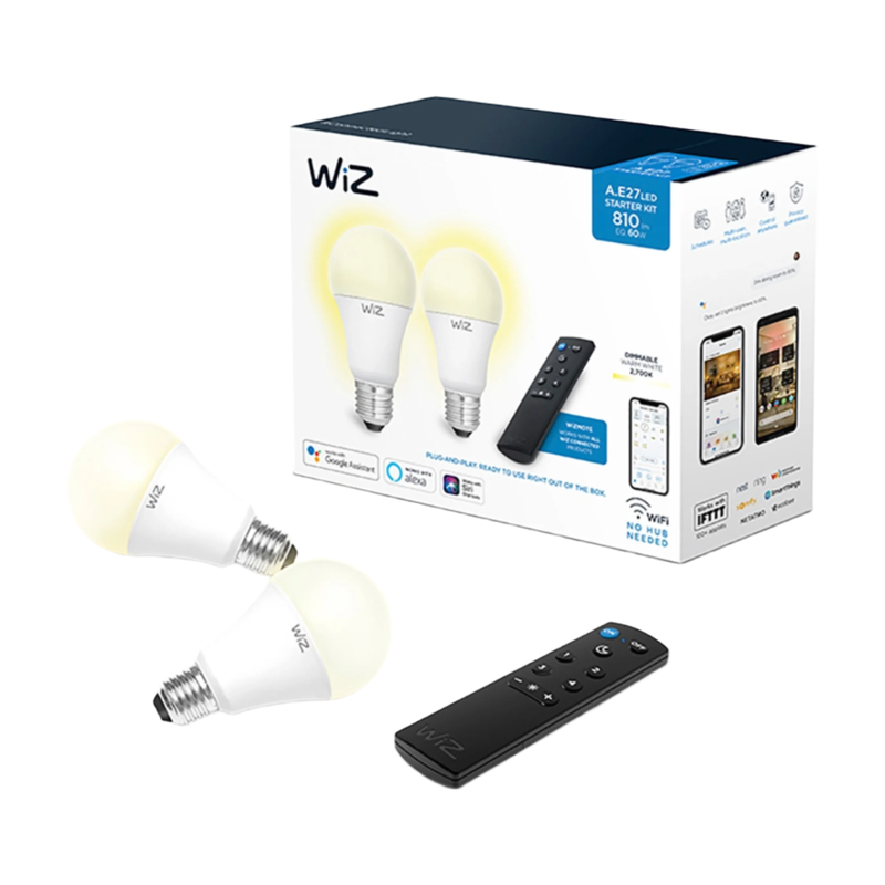WiZ Smart Starter-Set Warmweiß 2 LED-Leuchtmittel & Fernbedienung A60 E27