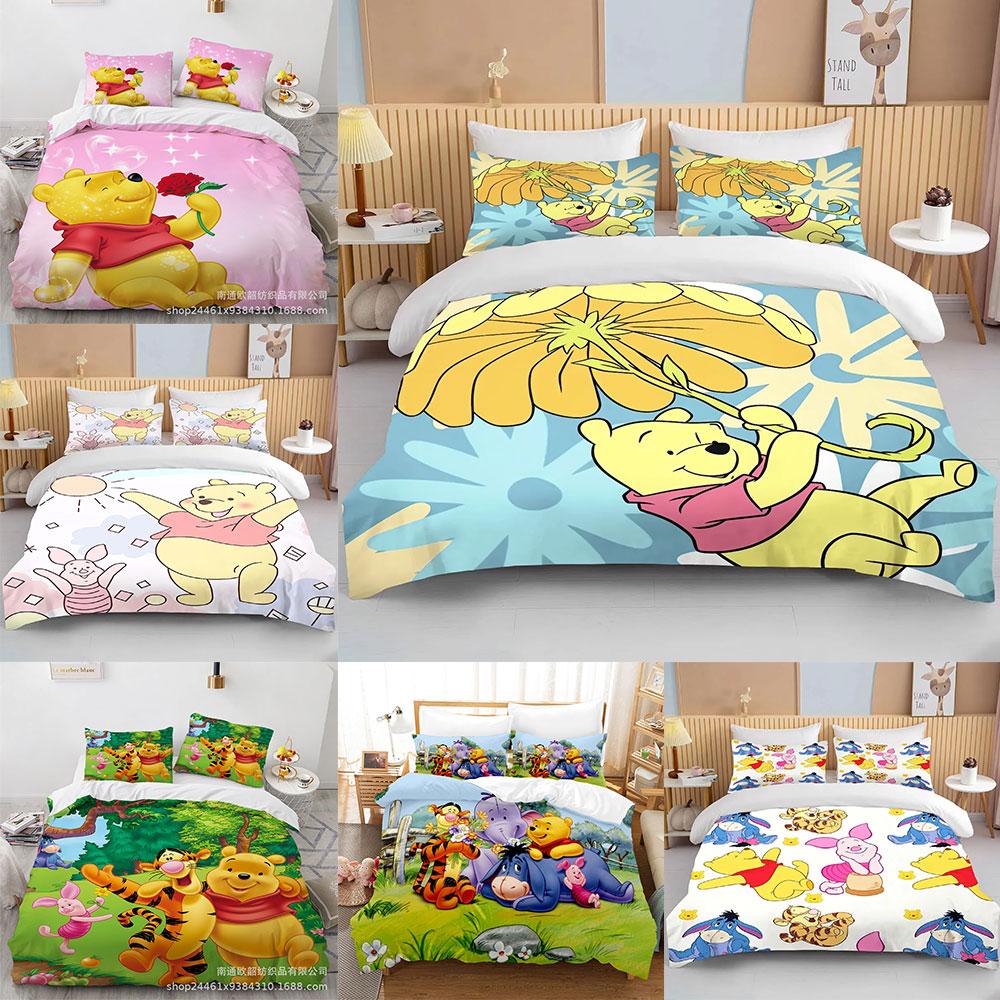 Winnie the Pooh Bear Bedding Sets Comforter Quilt Bed Cover Duvet Cover Pillow Case 2-3 Pieces Sets Kids Adult Size