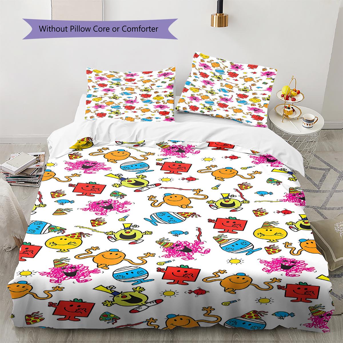 Mr. Men Little Miss Pattern Bedding,Quilt Set Quilt Cover Pillowcase Home Birthday Gift (1 * duvet cover + 2 * pillowcase, without core)