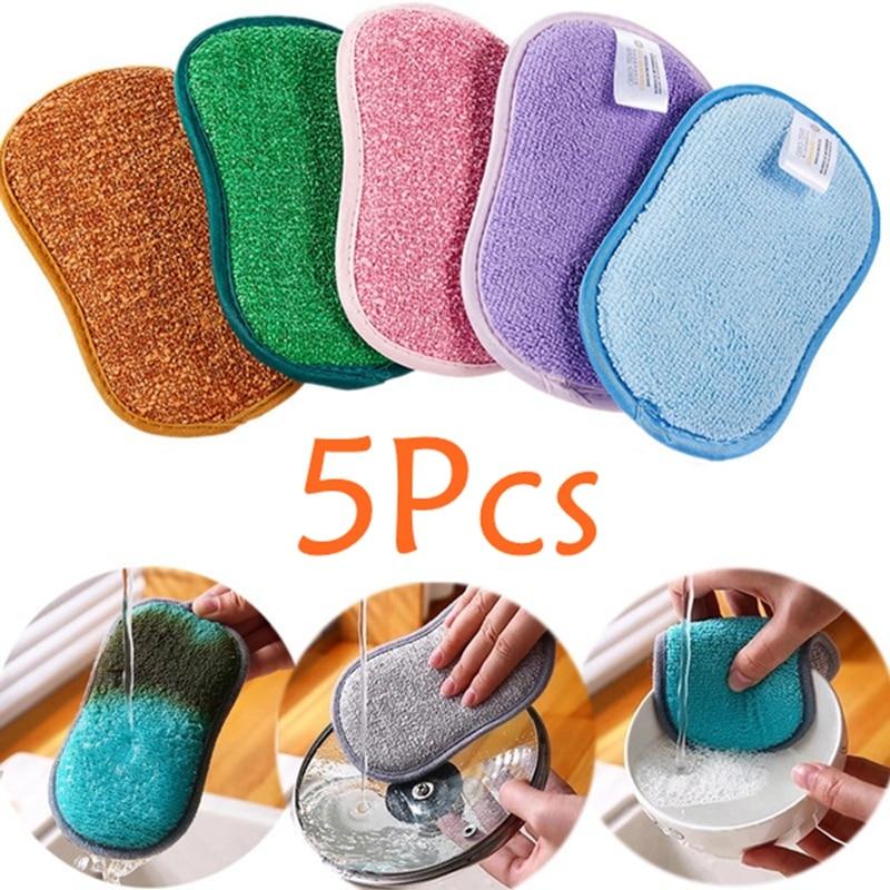5 stk Kjøkkenrengjøringssvamp for oppvask Skrapfri mikrofibersvamp Skrubber Kjøkken Rengjøringsgryte for hjemmet Pan Oppvaskmaskin svamp
