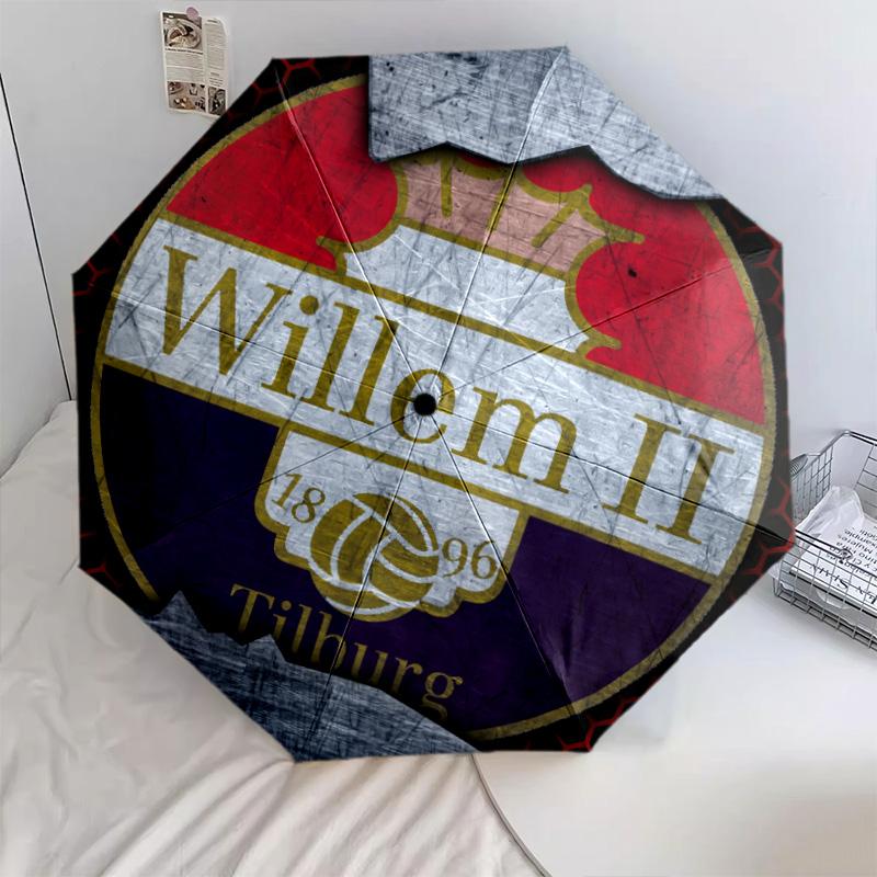 Willem II Tilburg patroon, automatische opvouwbare paraplu, draagbaar en opvouwbaar ontwerp, 8 baleinen, een kerst- of verjaardagscadeau.