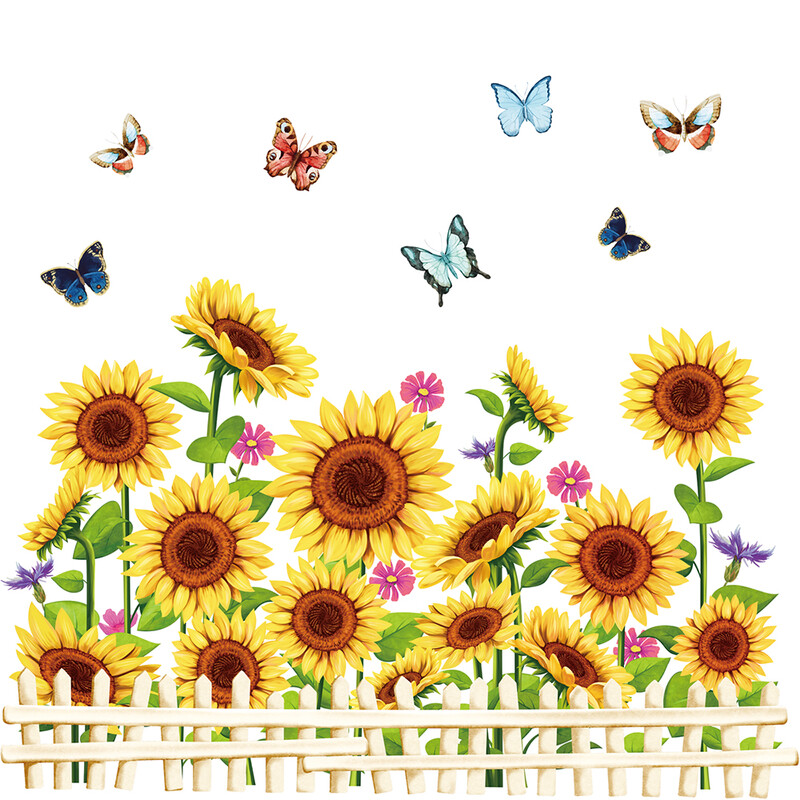 Sonnenblumen Wandsticker, 3D Gelbe Blumen Wanddekoration, Einfach abziehbare und selbstklebende Tapete, DIY Abnehmbare Wandkunst für Badezimmer, Schlafzimmer, Kinderzimmer, TV-Duschkabinentür, Wohnkultur, Sonnenblume Schmetterling