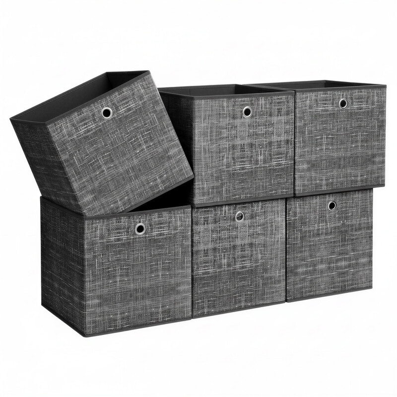 SONGMICSHOME Storage Boxes, Set of 6, Non-Woven Fabric Organiser Boxes with Handle, Boxes Storage, 33 x 33 x 33 cm, Organiser Box, for Cube Shelf, Grey