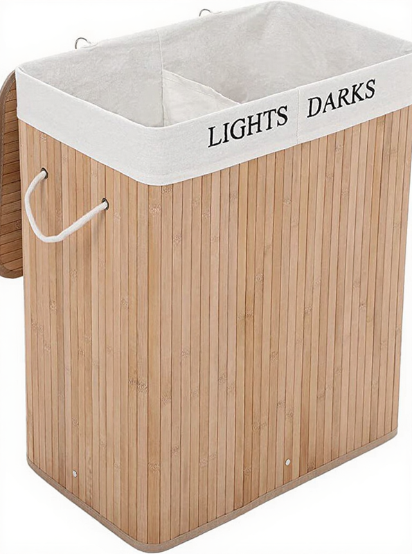 SONGMICSHOME panier à linge pliable en bambou de 100 L avec 2 compartiments - 52 x 63 x 32 cm
