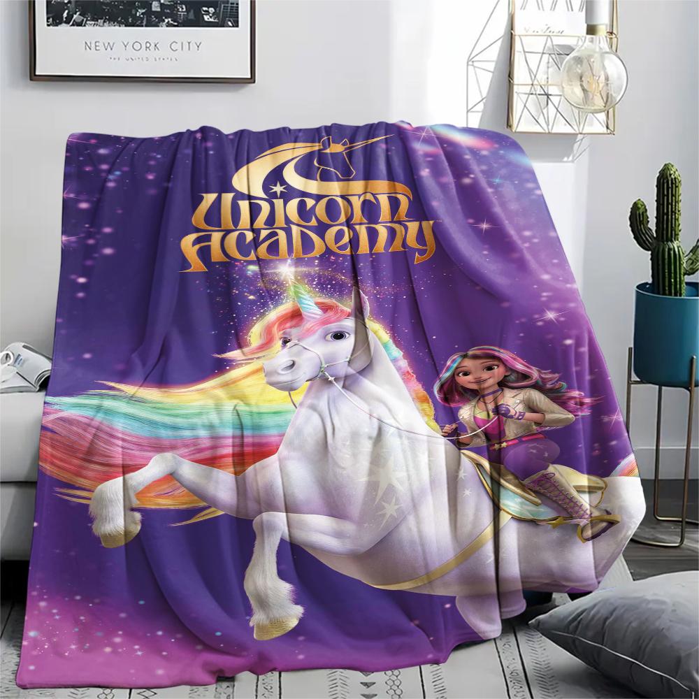 1 Stück Einhorn-Akademie-Print Flanell-Decke, Hohe Qualität, Bequem für alle Jahreszeiten, Heimdekoration, Wärme und Komfort, Perfekt für Geschenke